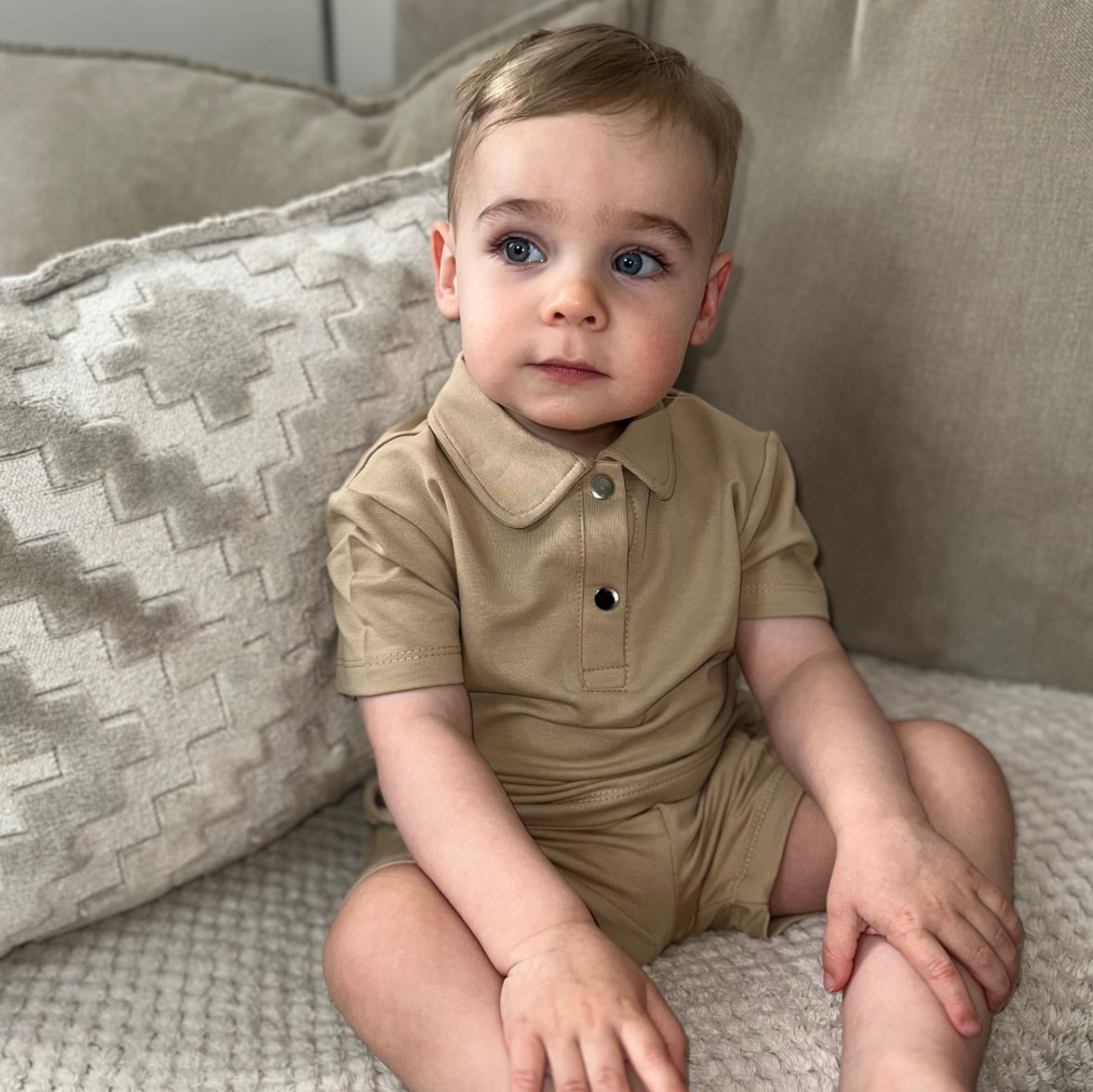 Beige Polo Shorts Set